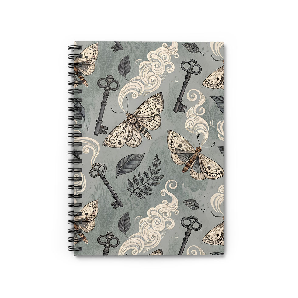 Vintage Moth & Key Spiral Notebook — Ruled Journal for Notes & Sketches