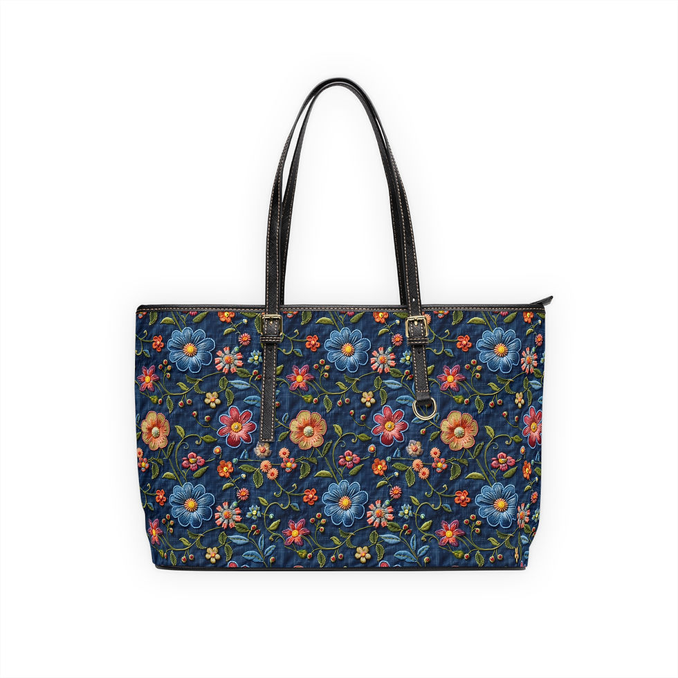 Floral Embossed PU Leather Shoulder Bag — Embroidered Look Vintage Flower Tote