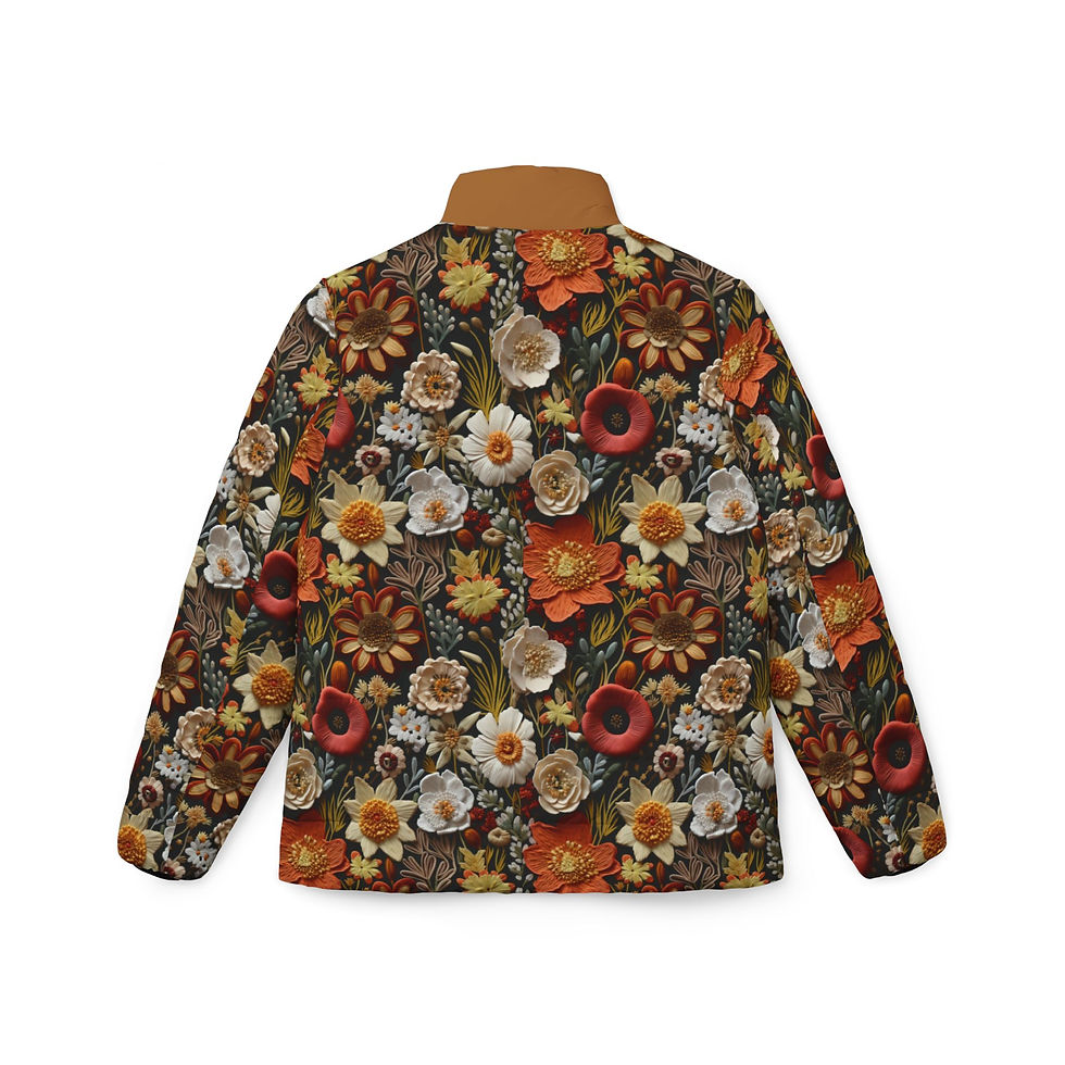 Floral Autumn Embroidered Look Puffer Jacket